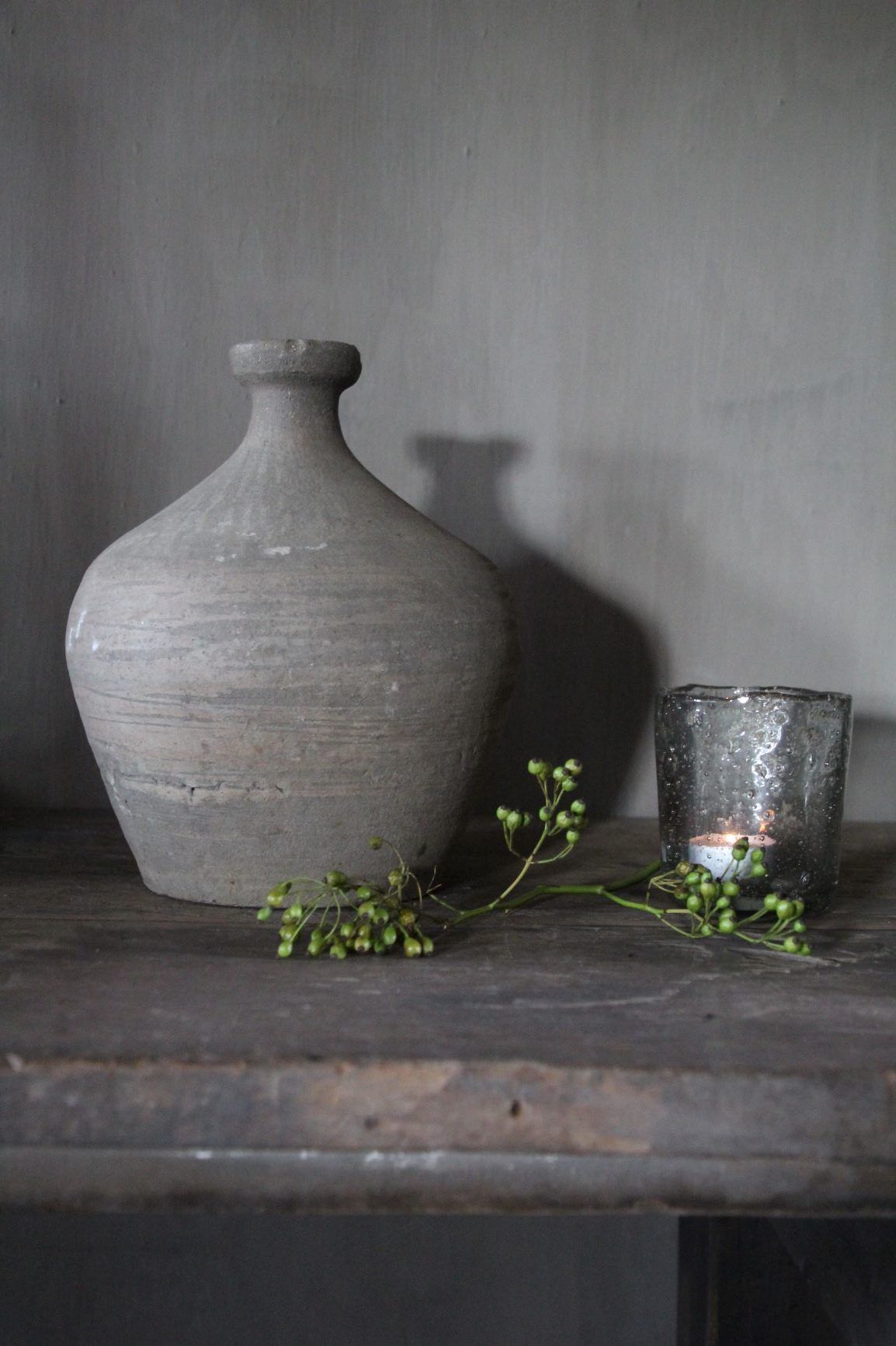 Oud stenen halskruikje in een middengrijze kleur. Betreffen zeer oude stenen kruikjes. Deze kruik is 26 cm hoog en heeft een doorsnede van 19cm.