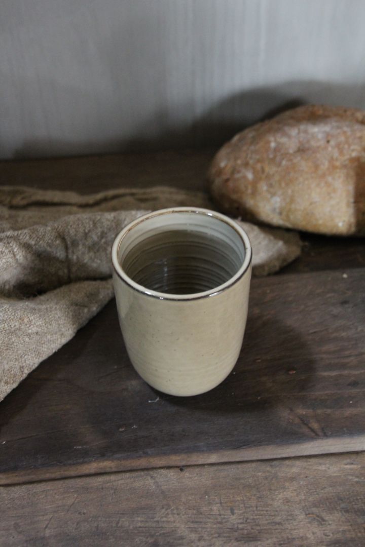 Mok zonder oor van het zandkleurige Tabo servies.