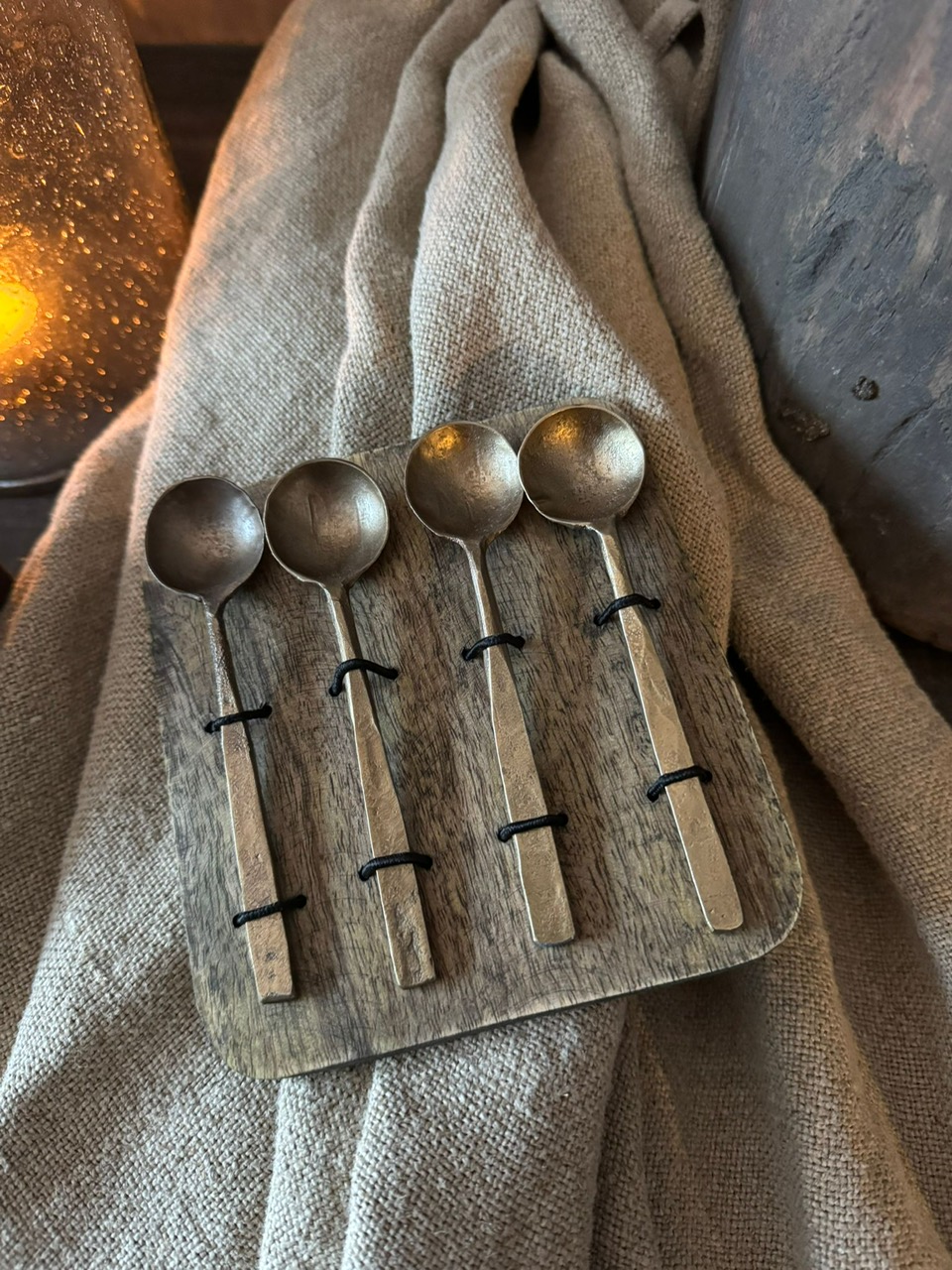 Set van 4 theelepels van Aura Peeperkorn in old messing (lang)